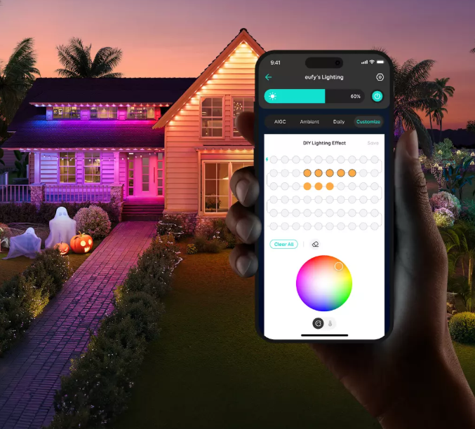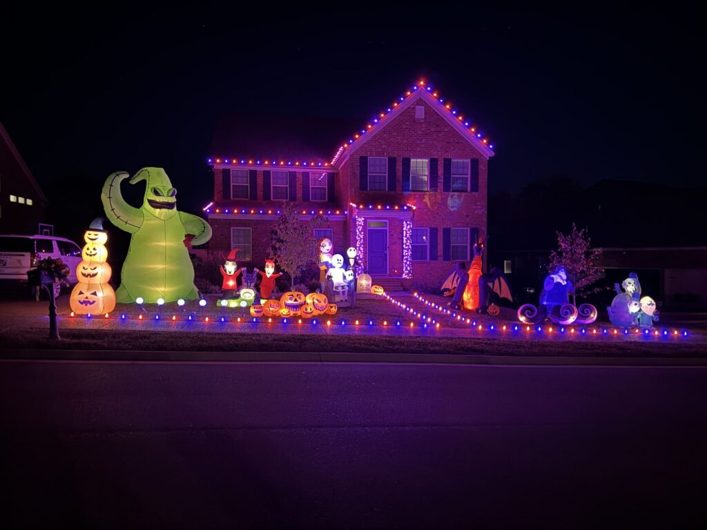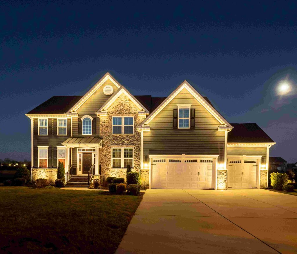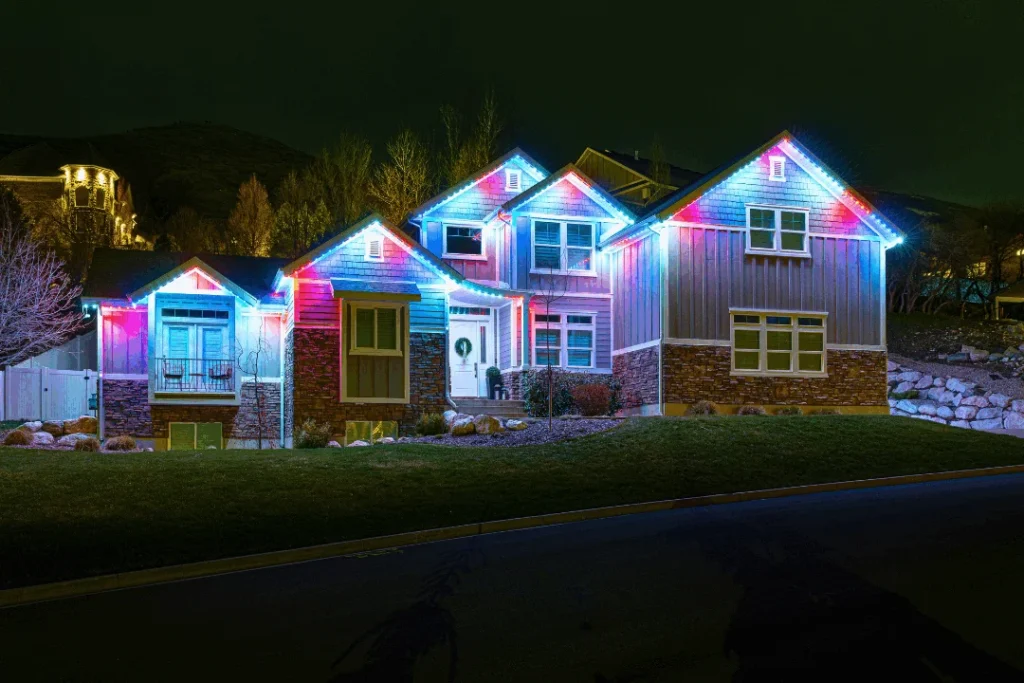 Unlike the big bulbs we install during Christmas, permanent lights are installed under the soffit in low-profile tracking making them blend with the house